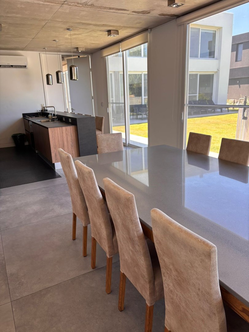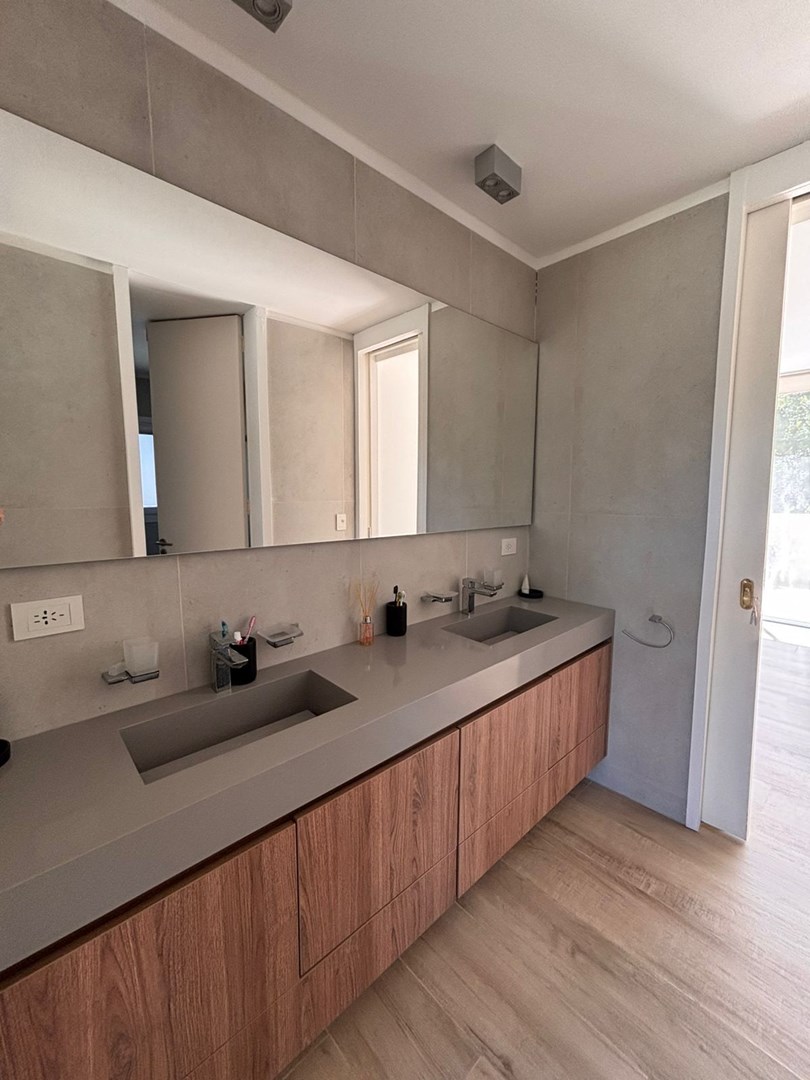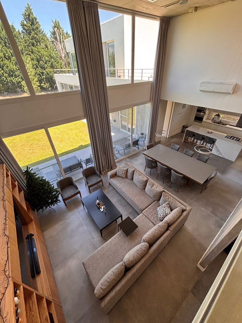 Exclusiva propiedad de diseño moderno en tres plantas Casa de arquitectura contemporánea y excelente calidad constructiva, desarrollada en 3 niveles, con ambientes muy amplios, luminosos y funcionales, pensados para disfrutar del confort y la privacidad en cada espacio. Distribución y características Planta Baja • Hall de recepción con impactante vista a la cava en subsuelo • Living–comedor en concepto abierto, con doble altura y ventanales de piso a techo, integrados a la cocina y con increíbles vistas al parque y la piscina • Cocina de diseño con horno empotrado, anafe y barra desayunadora Heladera y freezer panelables, con terminaciones sobrias y de gran calidad • 2 suites con vestidor y baño completo (una de ellas con doble bacha y ducha escocesa) • Dependencia de servicio con baño • Toilette de recepción • Placard recibidor y escritorio • Quincho cerrado con parrilla, horno y barra, con hermosas vistas al jardín y salida al exterior • Baño completo en quincho • Galería descubierta Subsuelo • Cochera cubierta para 6 autos • Cava • Sala de máquinas • Lavadero con amplios espacios de guardado Planta Alta • Hall de distribución balconeando los espacios sociales, con sectores de guardado • 2 dormitorios en semisuite (doble bacha y box de ducha) • 2 dormitorios adicionales, uno de ellos con balcón • Baño completo • Acceso a playroom con salida a balcón Exterior • Piscina revestida en piedra Bali, con playa húmeda y cerco de seguridad removible • Galería descubierta • Jardín totalmente parquizado • Riego automatizado • Asador Servicios y equipamiento • Aberturas de piso a techo con DVH • Calefacción por losa radiante • Aires acondicionados en todos los ambientes • Circuito de cámaras de seguridad • Cocina y terminaciones de primera calidad ______________ Una casa pensada para disfrutar la amplitud, la privacidad y el confort, ideal para quienes buscan vivir rodeados de naturaleza, diseño y seguridad, sin resignar calidad ni estilo.